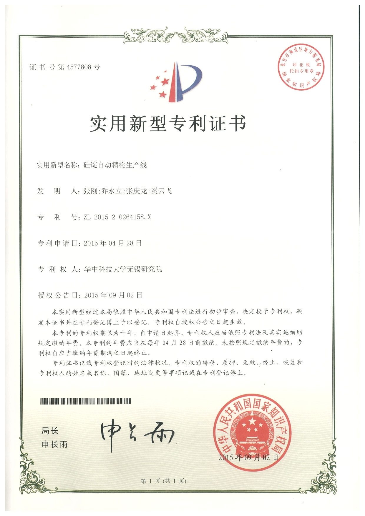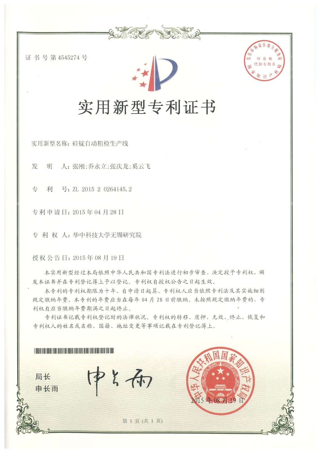 (1) 硅錠自動粗檢生產(chǎn)線,授權(quán)號: ZL201510207503.0