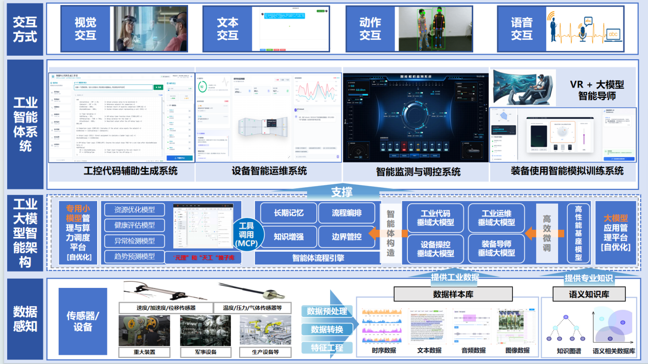 自2017年以來,數(shù)據(jù)分析與工業(yè)軟件團(tuán)隊(duì)深耕工業(yè)人工智能、數(shù)字孿生、大模型和知識(shí)服務(wù)領(lǐng)域,開發(fā)了AI專用算子庫(kù)“元理”“天工”,支持智能設(shè)計(jì)、生產(chǎn)智能調(diào)控和智能運(yùn)維等場(chǎng)景。自2024年以來,團(tuán)隊(duì)研發(fā)工業(yè)大模型智能體應(yīng)用底層框架,并應(yīng)用到裝備智能運(yùn)維、工控代碼生成、工業(yè)系統(tǒng)調(diào)控和裝備使用模擬訓(xùn)練等場(chǎng)景。工控代碼輔助生成場(chǎng)景,系統(tǒng)引入“工業(yè)代碼垂域大模型”,可理解開發(fā)者意圖,輔助生成標(biāo)準(zhǔn)化控制邏輯代碼,大幅降低編程門檻,減少人為錯(cuò)誤,顯著提升開發(fā)效率與質(zhì)量。設(shè)備智能運(yùn)維場(chǎng)景,系統(tǒng)依托“健康評(píng)估模型”“故障診斷模型”及“長(zhǎng)記憶”機(jī)制,實(shí)時(shí)分析運(yùn)行數(shù)據(jù)預(yù)測(cè)潛在風(fēng)險(xiǎn),故障發(fā)生時(shí)快速調(diào)取維修案例定位根因,實(shí)現(xiàn)從“救火式維修”到“預(yù)測(cè)性維護(hù)”的跨越。系統(tǒng)智能監(jiān)測(cè)與控制場(chǎng)景,系統(tǒng)構(gòu)建智能監(jiān)控中心,通過“異常檢測(cè)”“趨勢(shì)預(yù)測(cè)”模型捕捉艦船等狀態(tài)波動(dòng),借助智能體流程引擎實(shí)現(xiàn)精準(zhǔn)邊界管控,確保高價(jià)值裝備安全高效運(yùn)行。裝備使用智能訓(xùn)練場(chǎng)景,系統(tǒng)利用“裝備導(dǎo)師垂域大模型”打造虛擬化訓(xùn)練環(huán)境,新員工可通過自然語言交互模擬極端工況操作,以“數(shù)字孿生”式訓(xùn)練保護(hù)物理設(shè)備,加速技能轉(zhuǎn)化,解決人才培養(yǎng)周期長(zhǎng)的痛點(diǎn)。該解決方案已在中車、中船和中核等場(chǎng)景應(yīng)用,在高端裝備制造、流程工業(yè)、軍工航空、能源電力等知識(shí)密集型行業(yè)等具有較高的推廣價(jià)值。