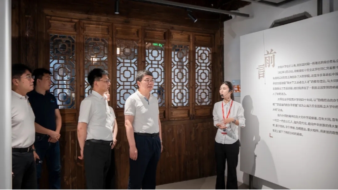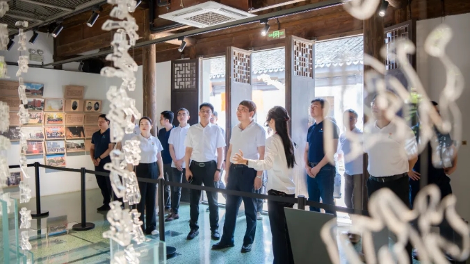 在專業(yè)講解員的引導下,丁漢院士一行沿著歷史脈絡,依次參觀了胡壹修胡雨人故居、胡漢學舊居、胡氏公立蒙學堂舊址及胡氏積谷倉遺址。大家深入學習了胡氏家族“誠勤立達”家訓的深刻內(nèi)涵,并重點聚焦近代著名教育家胡雨人先生矢志不渝興辦新學、探索科教救國的感人事跡與卓越貢獻。館內(nèi)塵封百年的家訓手稿、泛黃的教育文獻、 生動的家風故事與互動展陳,不僅鮮活再現(xiàn)了胡氏家族“讀書明理、實干報國”的優(yōu)良傳統(tǒng),更讓大家深刻感受到胡雨人先生作為中國近代新式教育,特別是理工教育拓荒者的遠見卓識。他創(chuàng)辦胡氏公立蒙學堂等新式學校,系統(tǒng)引入物理、算術(shù)等西式課程,開江南地區(qū)新式教育風氣之先,尤其強調(diào)數(shù)理等基礎學科的教育,致力于培養(yǎng)經(jīng)世致用之才,其敢為人先的教育理念與實踐為中國現(xiàn)代理工教育的發(fā)展奠定了重要基石。這種將個人、家族命運與國家、民族前途緊密相連的精神內(nèi)核,與當代科研工作者“嚴謹治學、服務國家”的追求高度契合,給丁漢院士及隨行科技工作者留下了深刻印象。