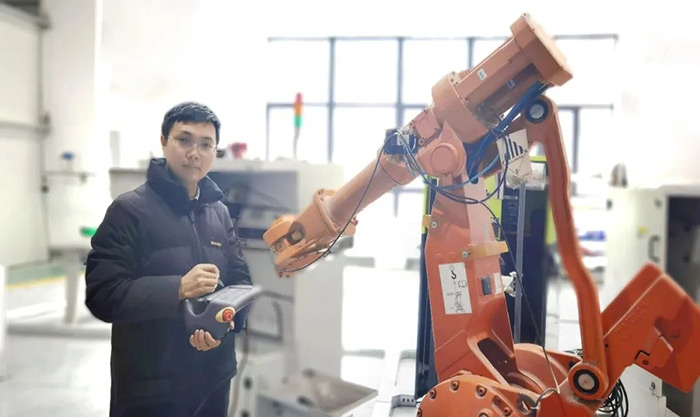 楊澤源提出了加工質(zhì)量與誤差動(dòng)態(tài)作用下的機(jī)器人末端加工精度主動(dòng)調(diào)控與保障方法,實(shí)現(xiàn)了大型曲面構(gòu)件機(jī)器人磨拋誤差動(dòng)態(tài)補(bǔ)償與質(zhì)量提升,應(yīng)用于高鐵白車身、大型風(fēng)電葉片等制造過程,有效降低了機(jī)器人作業(yè)誤差,并將數(shù)天的調(diào)試時(shí)間,縮短到了十幾分鐘。